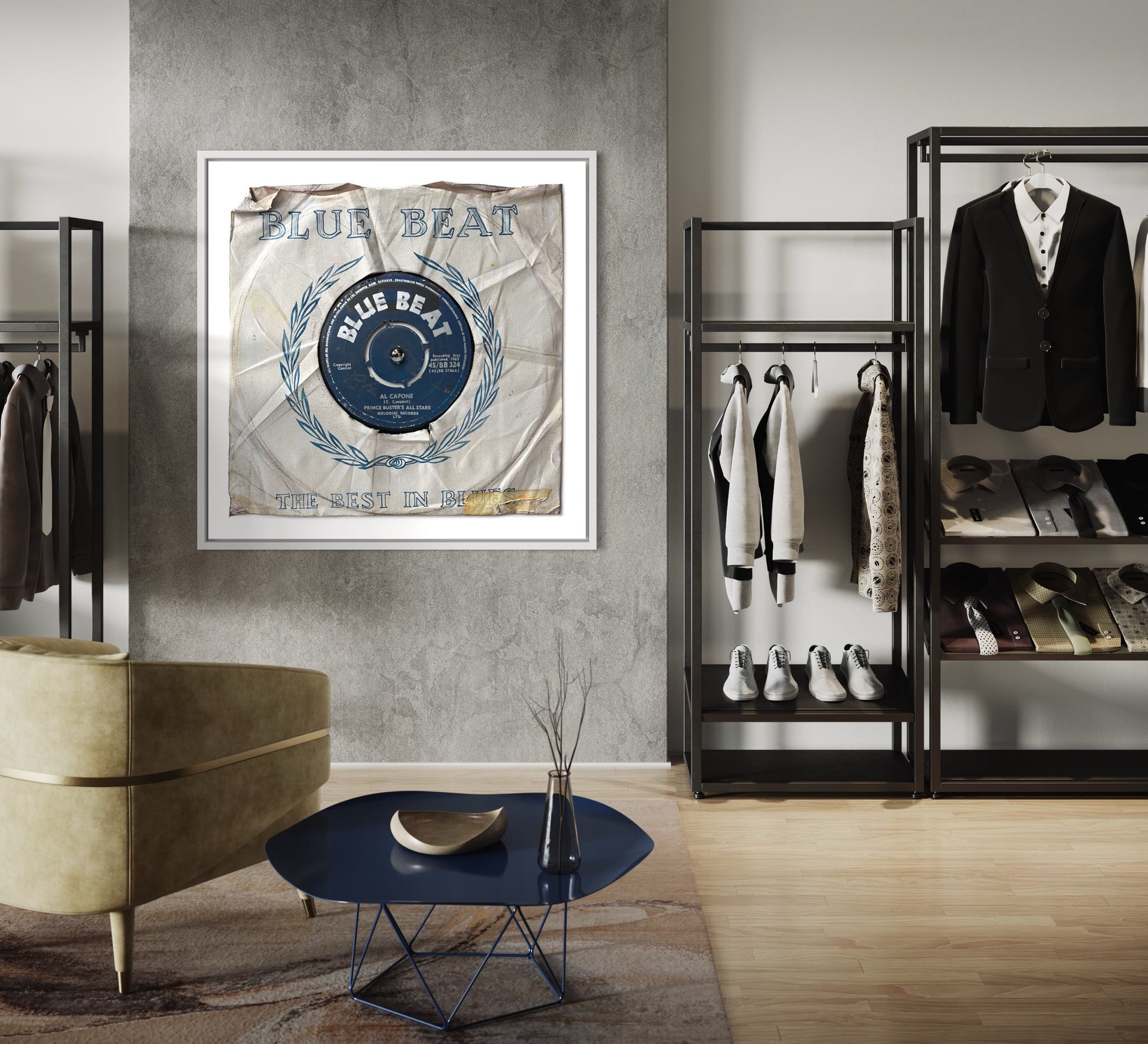 3D Print construction on canvas 27" vinyl disc & printed fine art paper label