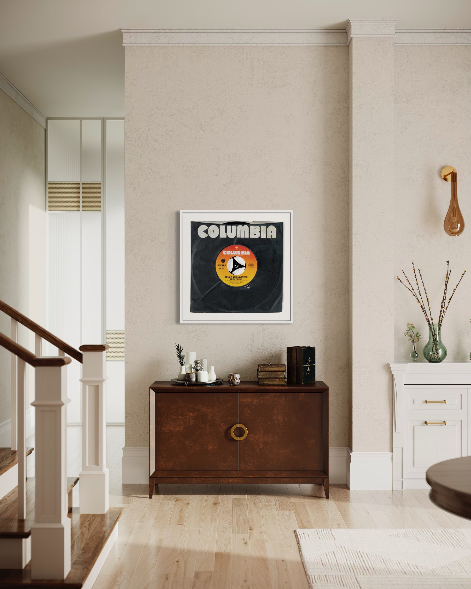 3D Print construction on canvas 27" vinyl disc & printed fine art paper label