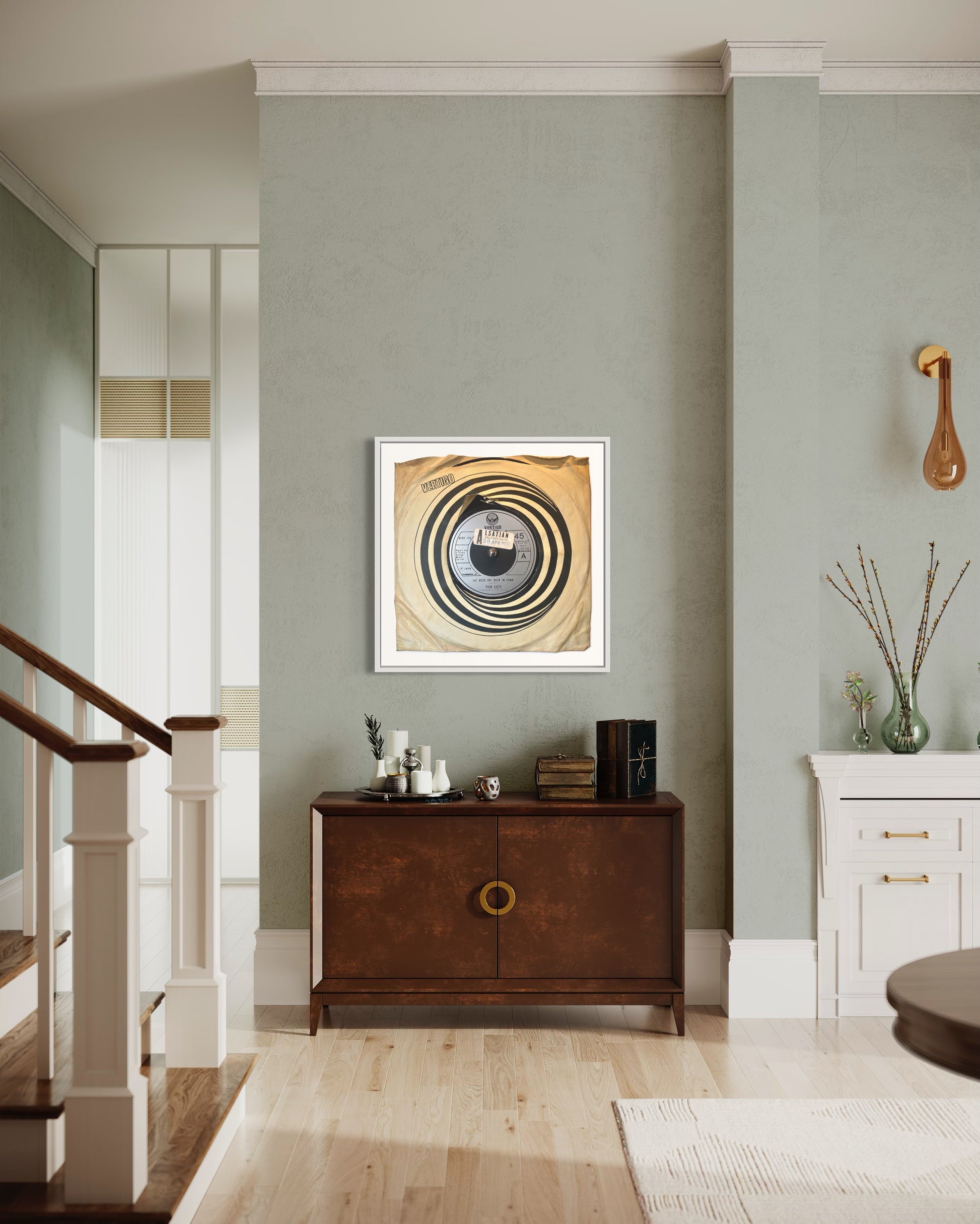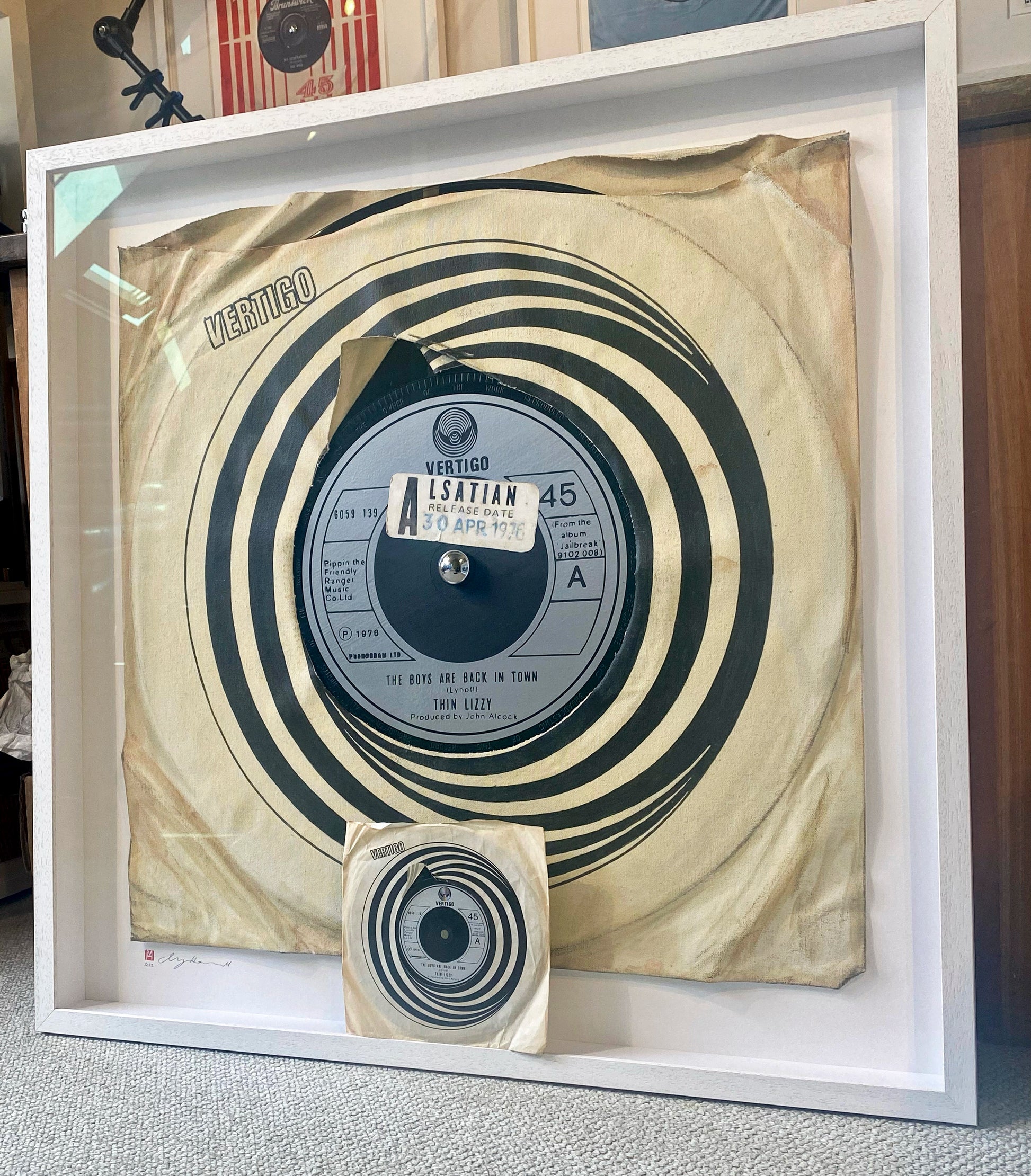 3D Print construction on canvas 27" vinyl disc & printed fine art paper label
