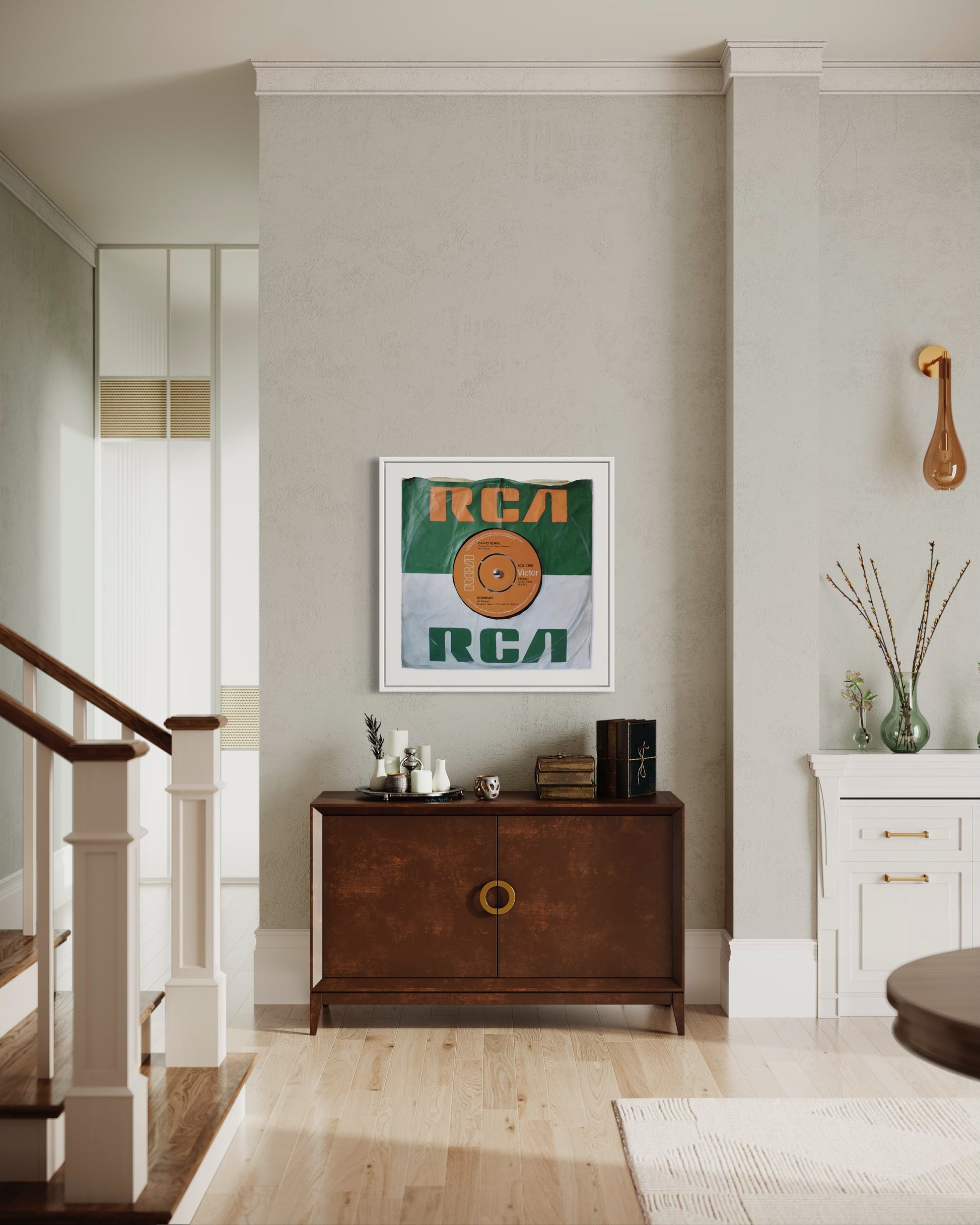 3D Print construction on canvas 27" vinyl disc & printed fine art paper label