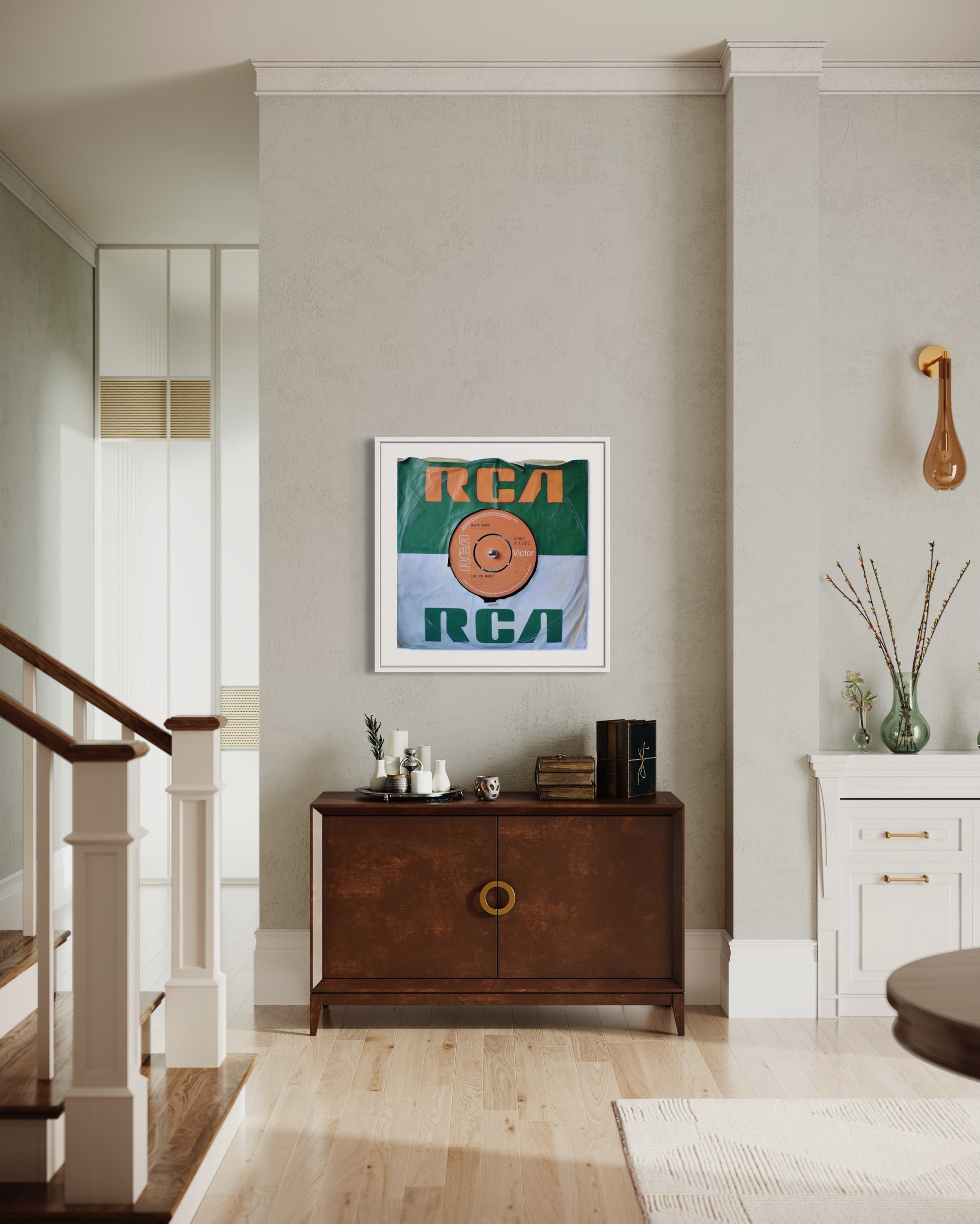 3D Print construction on canvas 27" vinyl disc & printed fine art paper label