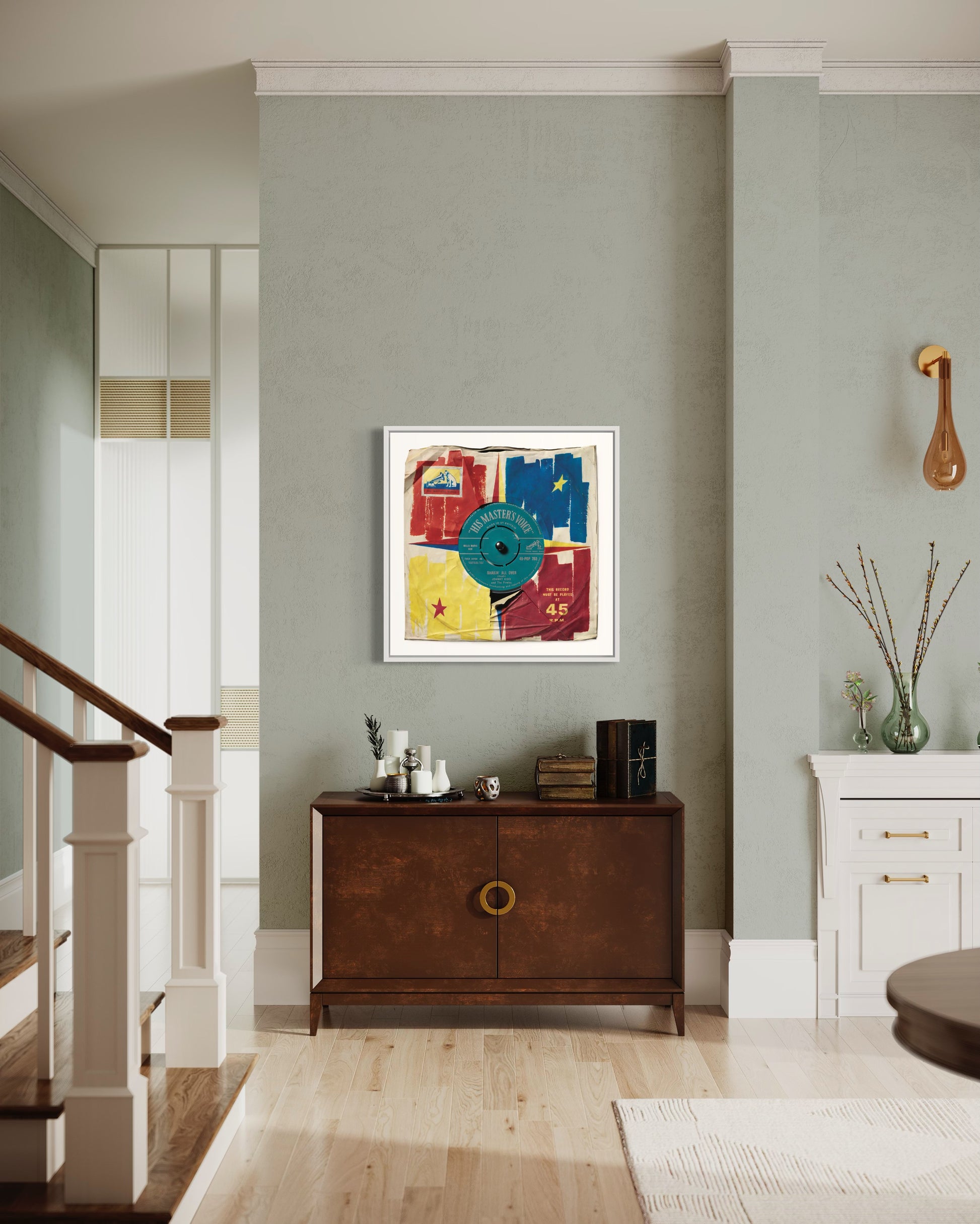 3D Print construction on canvas 27" vinyl disc & printed fine art paper label